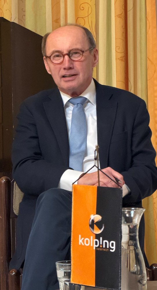 Fazit des Politikers: „Ich glaube, dass es ernst ist, aber nicht hoffnungslos, und dass es machbar ist, die Herausforderungen der Gegenwart zu meistern.“ Klinge sehr nach dem berühmten, jedoch umstrittenen Satz der früheren deutschen Kanzlerin Angela Merkel, „Wir schaffen das!“, wirft jemand aus dem Publikum ein. „Wenn ein Politiker sich den Krisen seiner Zeit nicht stellen will, soll er heimgehen“, kontert Karas. Es brauche diesen Ansatz: „Wir wollen das schaffen, wir trauen es uns zu, wir zeigen nicht mit dem Finger auf andere und geben ihnen die Schuld für alle Probleme, sondern wir nehmen die Hände aus dem Schoß und packen gemeinsam an.“ Manch einer, der wohl auch hier deutliche Kolping-Anklänge entdecken kann …