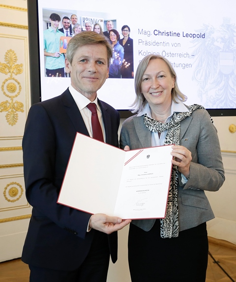 Schöne persönliche Anerkennung für Christine Leopold und gleichermaßen ein erfreuliches Zeichen der Wertschätzung der Arbeit von Kolping Österreich: am 22. April wurde unsere Präsidentin von Bundeskanzler Werner Faymann zum Mitglied der im Bundeskanzleramt angesiedelten Wirtschaftskurie bestellt. Dieses Gremium berät die Verantwortlichen der – ebenfalls dem Bundeskanzleramt zugeordneten – Bundesanstalt „Statistik Österreich“ in grundsätzlichen Fragen und bei der Erfüllung ihrer Aufgaben. Das von der Bundesanstalt erhobene Datenmaterial bildet eine wichtige Grundlage für sämtliche politischen Entscheidungen, speziell auch in sozialpolitischen Fragen.
