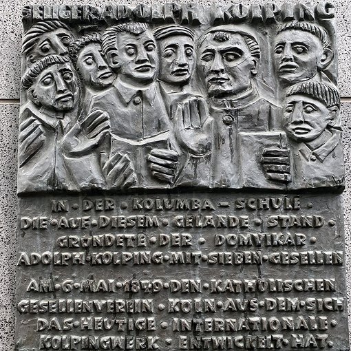 Von Elberfeld schickte er Gesellen nach Köln, damit sie unter ihren Standesgenossen Werbung für die Gründung eines Gesellenvereins machen. Als die Nachricht kam, es seien in Köln „schon viele beieinander“, schritt Kolping zur Tat: Er wechselte als Domvikar in die Großstadt am Rhein und gründete am 6. Mai 1849 in der St.-Kolumba-Schule nahe der Minoritenkirche einen eigenen „Kölner Gesellenverein“. Die Räumlichkeiten waren ihm drei Tage zuvor von der Stadt für sein Vorhaben zugeteilt worden. Eine Gedenktafel im Hof des Nachfolgegebäudes – heute ein Stadtmuseum – erinnert an das Ereignis.