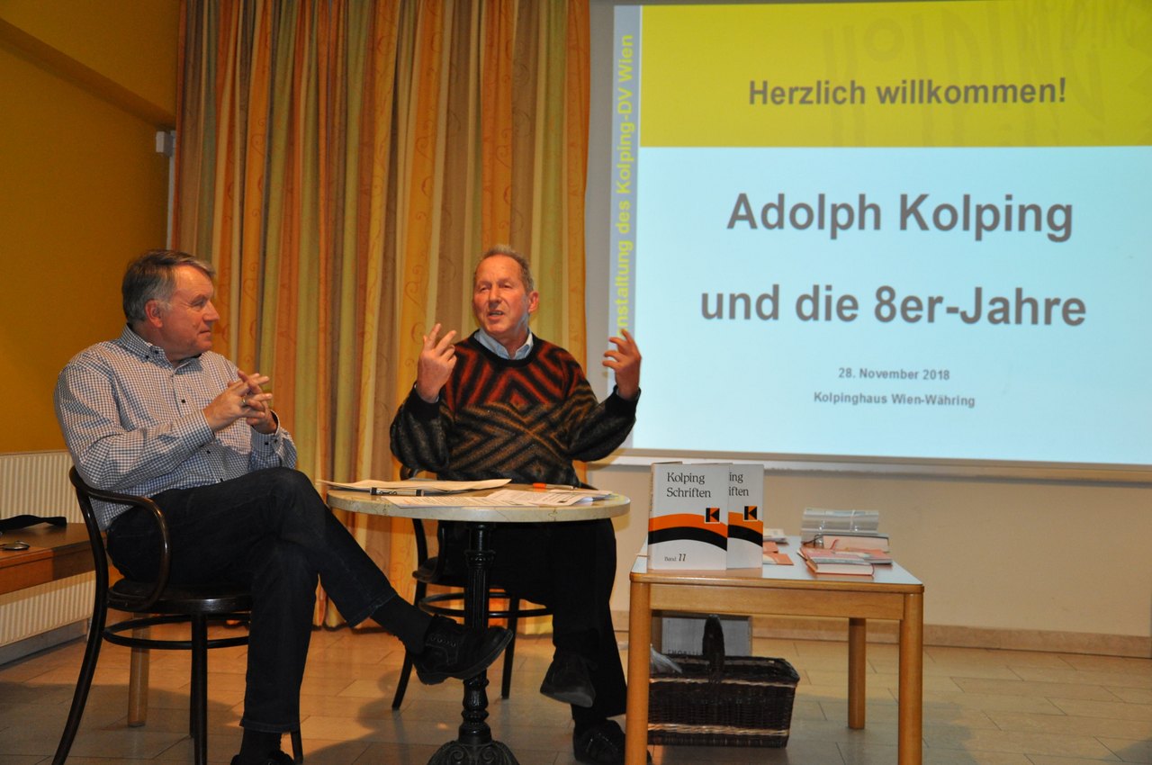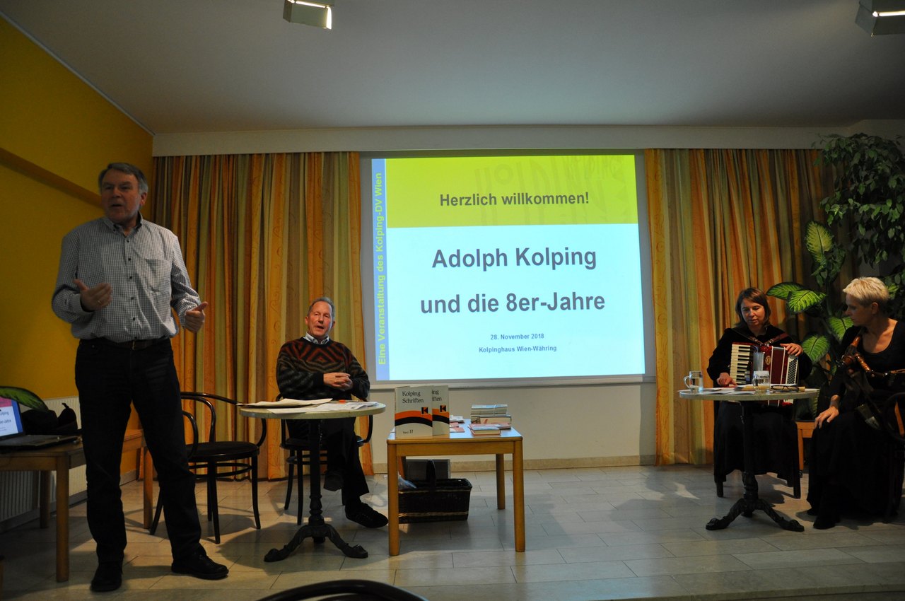 Zum Ausklang des „Gedenk- und Erinnerungsjahres“ 2018 lud der Kolping-Diözesanverband Wien Ende November zu einem Abend im Zeichen der Geschichte ins Kolpinghaus Wien-Währing ein. Bundesleiter Norbert Hauer und Vorsitzender Ludwig Wurst hatten Nachdenkliches und Kurzweiliges unter dem Motto „Kolping und die 8er-Jahre“ zusammengetragen, dem Gedanken folgend, dass Jahre mit der Ziffer „8“ am Ende nicht nur für unsere Republik, sondern auch unseren Verband bedeutsam waren. Das zeitgeschichtliche Umfeld des Wirkens Adolph Kolpings war die bürgerliche Revolution von 1848, ausgelöst u.a. durch das Elend der Fabrikarbeiter und wandernden Gesellen, das unser Gründer als Kaplan in Elberfeld hautnah miterlebte. Seine Antwort: praktische Alltagshilfen und allgemeine, berufliche, religiöse und gesellschaftspolitische Weiterbildung der Gesellen und sozial Benachteiligten, hat sich bis heute als tragfähig erwiesen.