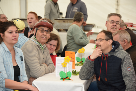 Ihre Arbeitsmittel hatten die KlientInnen mitgebracht: einen Rasentrimmer, Pinsel, Acrylfarbe, und den Altar im Festzelt zierte eine selbst produzierte, kunstvoll gestaltete Kerze; so wurde ihr Leben und ihre Leistung hereingeholt in die Feier des 40-Jahr-Jubiläums der Kolping-Werkstätte für Menschen mit Behinderung in Poysdorf (NÖ). Als „Menschen mit besonderen Fähigkeiten“ bezeichnete sie George van Horick, Präses der örtlichen Kolpingsfamilie, und dankte allen, die in der Werkstätte tätig sind, sowie jenen, die diese Einrichtung einst ins Leben gerufen hatten.