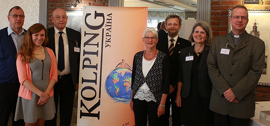 Aufnahme nach seiner Wahl bei der Kontinentalversammlung in der Ukraine, mit Europavorsitzender Margrit Unternährer (4. von rechts) und Europapräses Josef Holtkotte (ganz rechts)